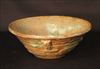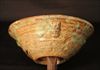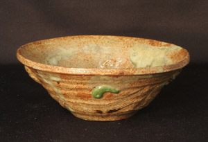 どこの窯かは断定できませんが、イッチンの緑釉・勾玉と碗の内・外側に流し掛けられた薄緑釉に陶土鉄分の赤の調和が何とも魅力的なお品です。お茶席の話題に事欠かないと思われます。