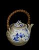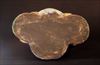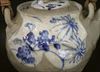 片面にアヤメ、もう一方には朝顔と菊(?)の図柄。摘みの獅子の尻尾に欠け、後脚に直しがあります。