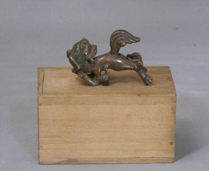 筆を置きやすい姿勢を取った獅子と顔の表情が何とも可笑しく、微笑ましい感じがします。