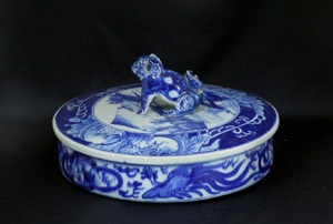 蓋にニュウと摘みの獅子の尾にホツレがあります。