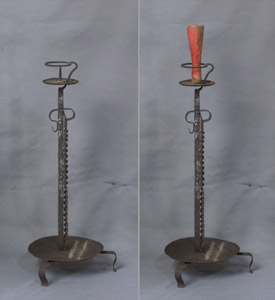 鉄材を捻って螺子状にした支柱がこの燭台の命で一番の見所です。手入れをすれば時代色が甦り、見違えるようになると思います。