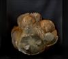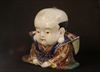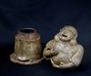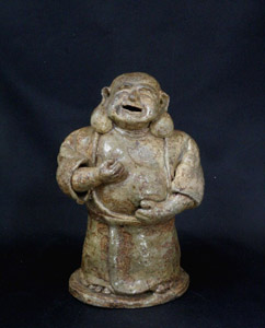 どこの窯かは断定できかねますが、どこかほんのりとした温かみのある布袋様です。両耳と口からお香の煙と香りほんのりと漂う姿に癒されて下さい。窯庇がありますが、良い景色の中に溶け込んでいるように思われます。