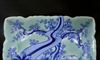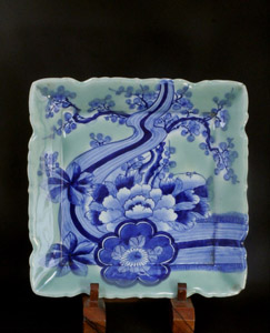 染付青磁・花図角皿