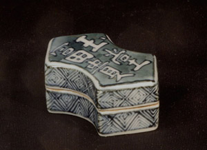 白抜きの『富貴玉堂』が堂々と主役を演じる存在感のある香合です。合せ箱。