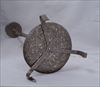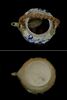 片面にアヤメ、もう一方には朝顔と菊(?)の図柄。摘みの獅子の尻尾に欠け、後脚に直しがあります。