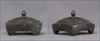 染付青磁・花図角皿