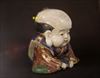 どこの窯かは断定できかねますが、どこかほんのりとした温かみのある布袋様です。両耳と口からお香の煙と香りほんのりと漂う姿に癒されて下さい。窯庇がありますが、良い景色の中に溶け込んでいるように思われます。