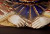 馬上の若君に扇を手渡そうとする恋する娘の図に耳の長い兎の窓絵、金彩の花唐草・・・とバランス良くまとめ上げた構図が素敵です。裏模様の唐草も見所です。